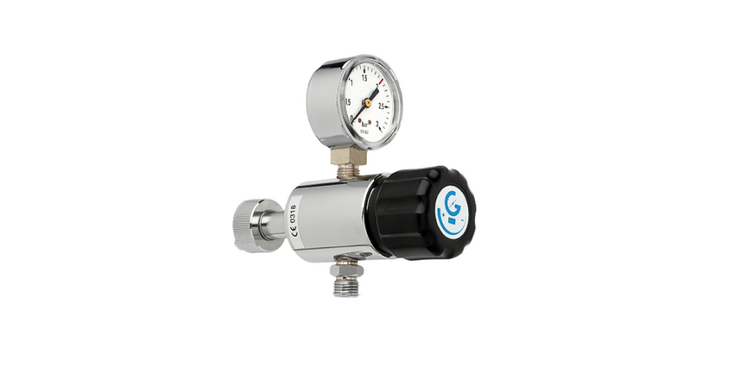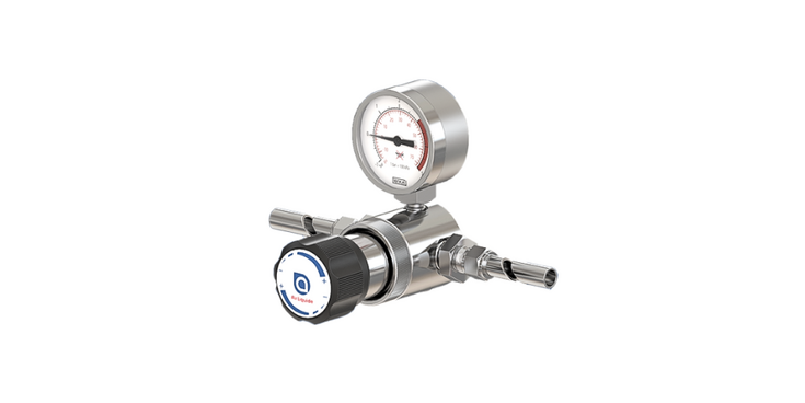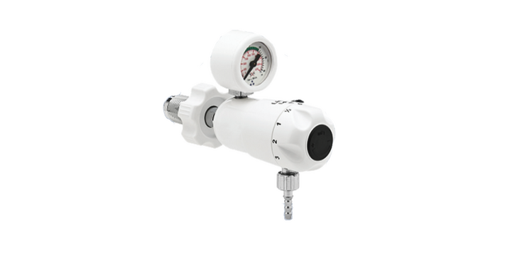 Regulador de baja presión para el suministro de gases medicinales. Su función es reducir la presión de suministro de la línea a una presión ajustable entre 0 y 8 bar.