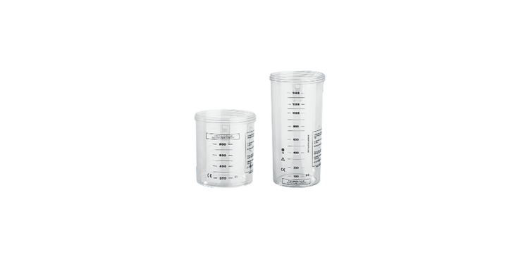 Contenedores de recogida de pequeño volumen para líquidos orgánicos aspirados. Los dos modelos tienen una capacidad de 300 ml y 500 ml, con una tapa especial para un filtro antibacteriano.