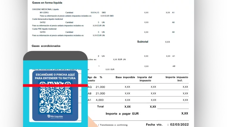 - Delegación Air Liquide Healthcare que emite la factura y datos de contacto.