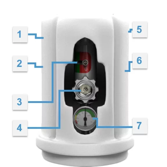 - Tulipa: Elemento que protege la válvula de la botella y permite su agarre o manipulación.